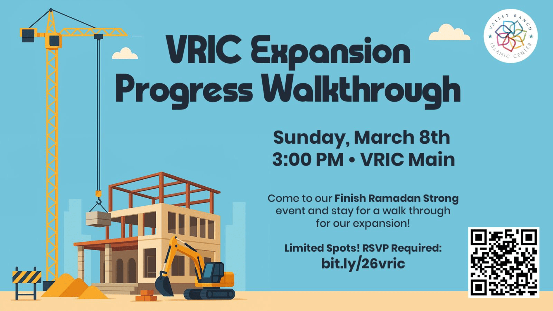 VRIC will also be holding a special iftar on Saturday, March 14th. Join us for our Annual Ramadan Fundraising event!