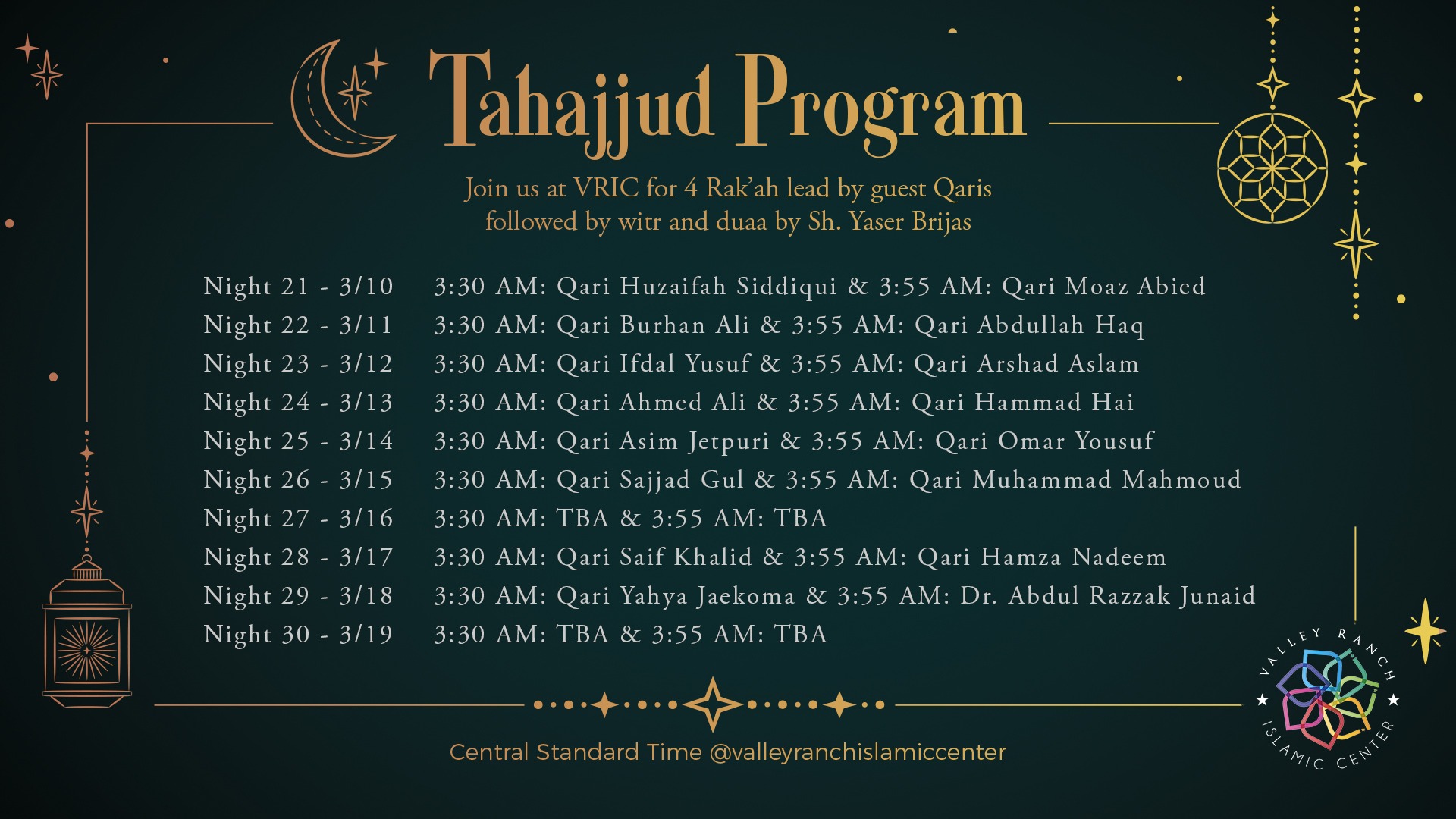 Everything you need to know Evening Programs, Khatm, Eid, and more